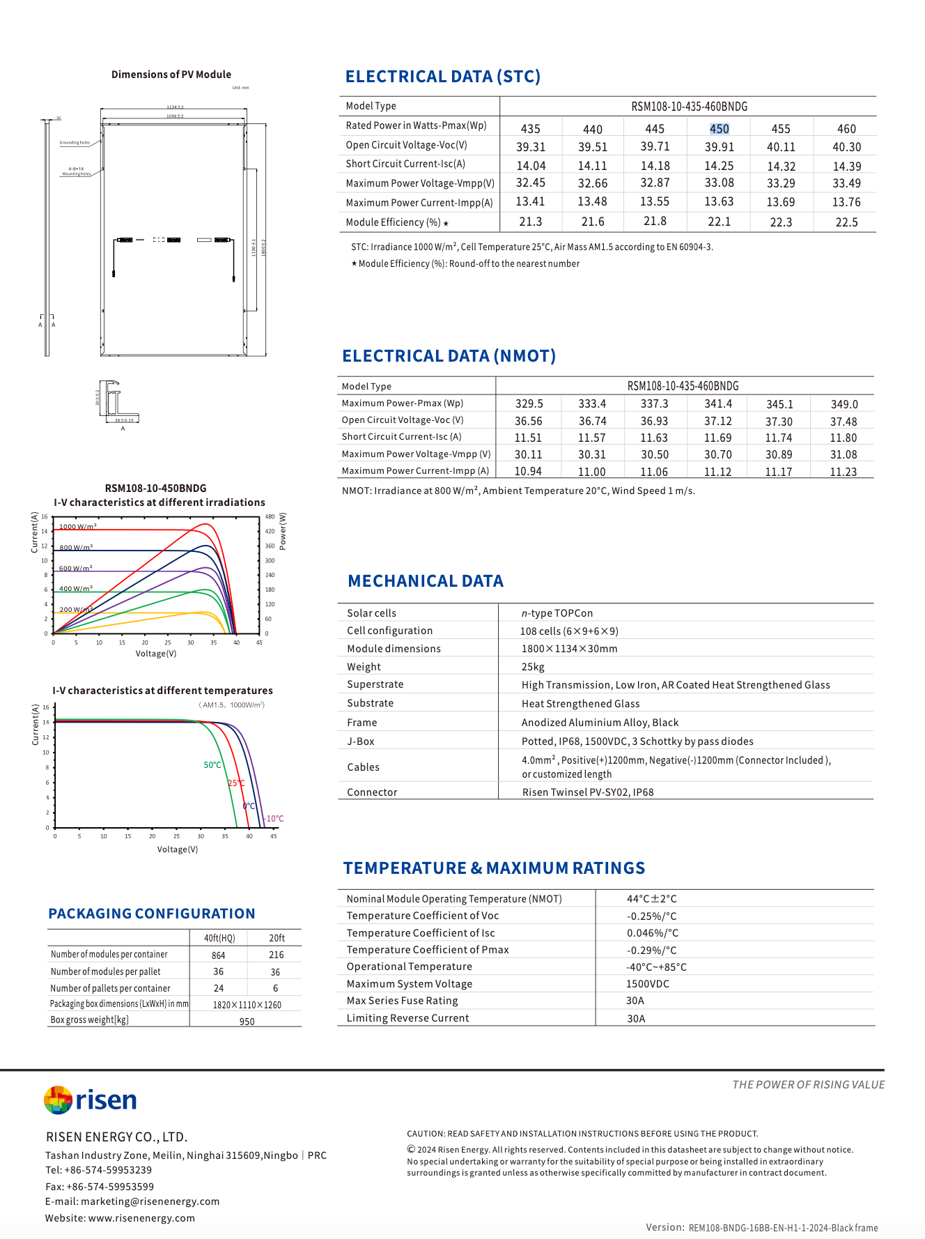 Natężenie promieniowania: 1000 W/m2 - Temperatura ogniwa: 25 °C - Widmo AM1.5 - NOCT 800 W/m2– Właściwości elektryczne
