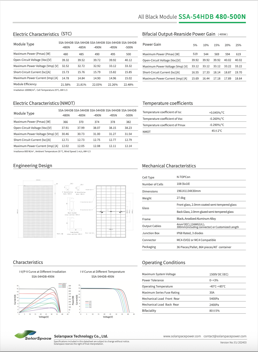 Solarmodul 500W BIFAZIAL FULLBLACK, Glas/Glas, SolarSpace, Lumina 2